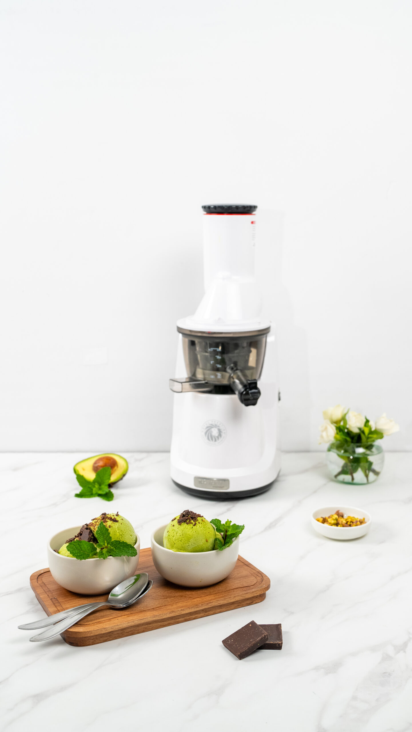 Sorbet de Abacate com Chocolate Amargo, Pistache e Hortelã