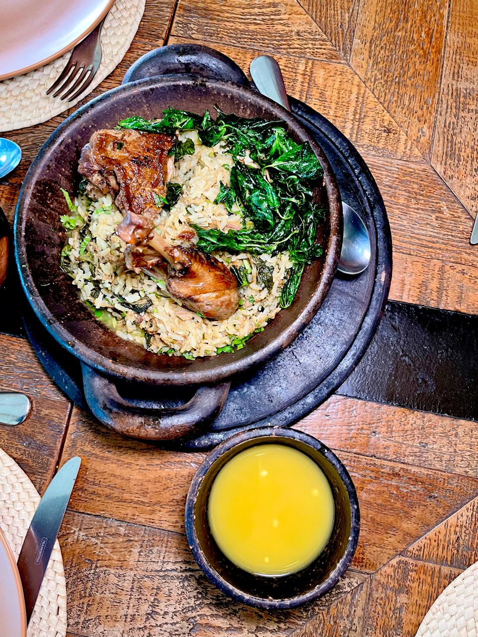 Há também pratos individuais e uma ótima pedida é o Arroz de pato paraense (R$ 94,90), um arroz caldoso de pato com tucupi e finalizado com crispy de jambu.